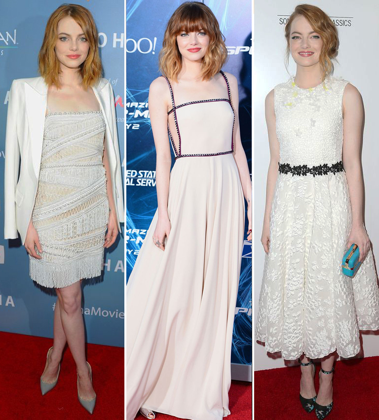 A kontrasztos smink mellett, a szintén kontrasztos minták is összhangban állnak a színésznő színbéli adottságaival. Igaz, hogy a fekete-fehér a telek privilégiuma, de egy élénkebb tavasz is megengedheti magának ezeket a végleteket egy szetten belül, ha megfelelő sminkkel ellensúlyozza.